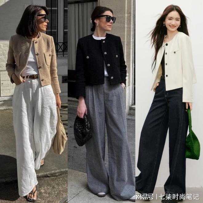 尤其是阔腿裤与短上衣的组合,不仅能营造出上短下长的黄金比例,又能在松弛随性中平添几分精致干练。
