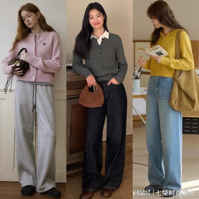 秋天用柔软的针织衫搭配阔腿裤,给人一种温柔又温暖的感觉。针织衫选择合身的版型,便多了几分轻盈利落,阔腿裤选择粗犷的牛仔布,中和了针织衫的软糯,温柔又不失锋芒。