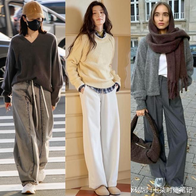 如果喜欢极简风,不妨尝试同色系搭配,灰色针织衫搭配垂顺的灰色西装阔腿裤,同色不同材质,简约高级又耐看。这样的搭配通勤上班穿不失气场,日常休闲又不失舒适和体面。
