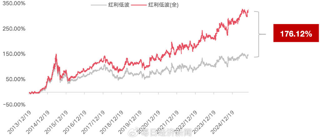 比如在红利低波指数2013年12月19日发布以来超过10年的运作期内,价格指数累计涨幅149.26%,同期计入样本分红再投资收益的红利低波(全)为325.38%,二者176.12%的差值即为股息分红所贡献的收益,占总回报54.12%。